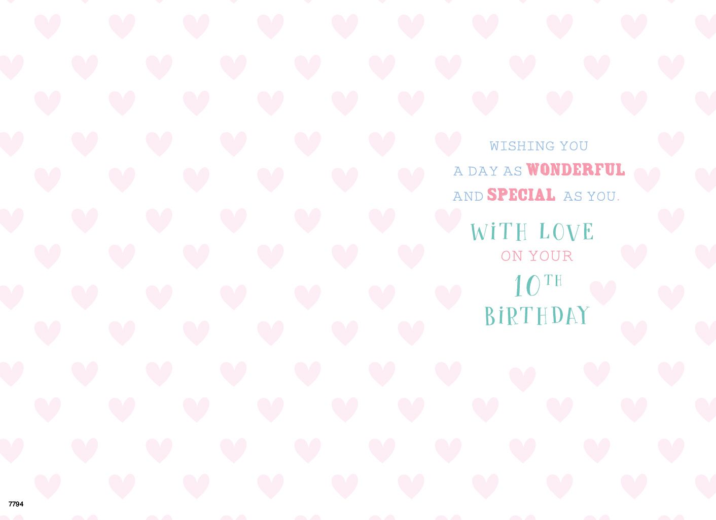 Verse reads: wishing you a day as wonderful and special as you. with love on your 10th Birthday