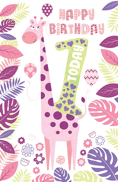 Happy Birthday 1 Today, Giraffe Card (no insert)