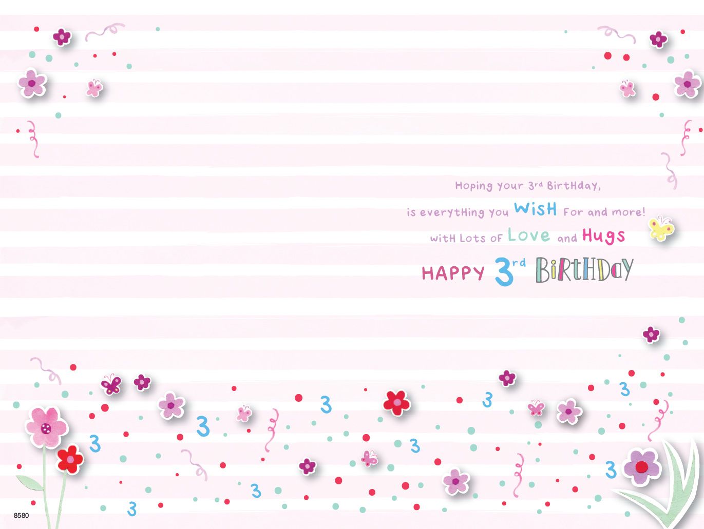 Verse reads: Hoping your 3rd Birthday, is everything you wish for and more! With lots of love and hugs