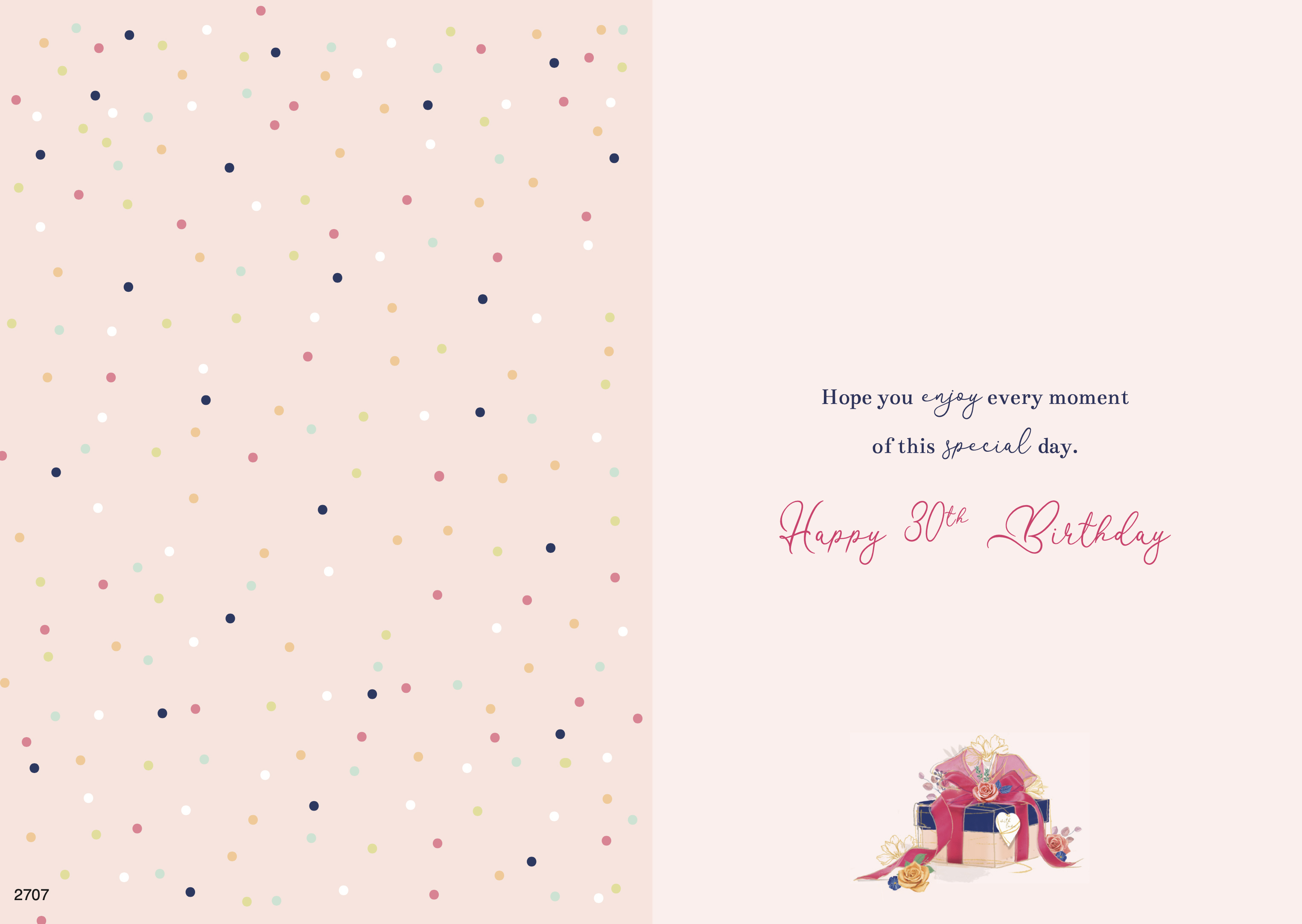 Verse reads: Hope you enjoy every moment of this special day. Happy 30th Birthday