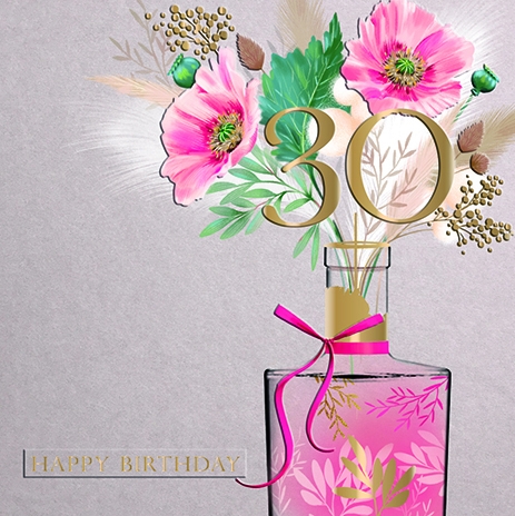 30th - Happy 30th Birthday - Bottle Poppies Gold