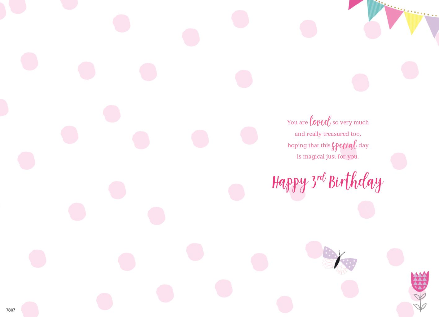 Verse reads: You are loved so very much and really treasured too, hoping that this special day is magical just for you. Happy 3rd Birthday