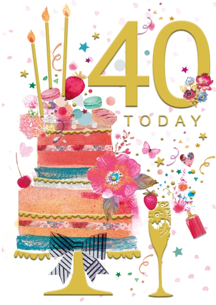 Verse reads: Today you're turning forty! Such a special time for you, so many precious memories and still so much to do!