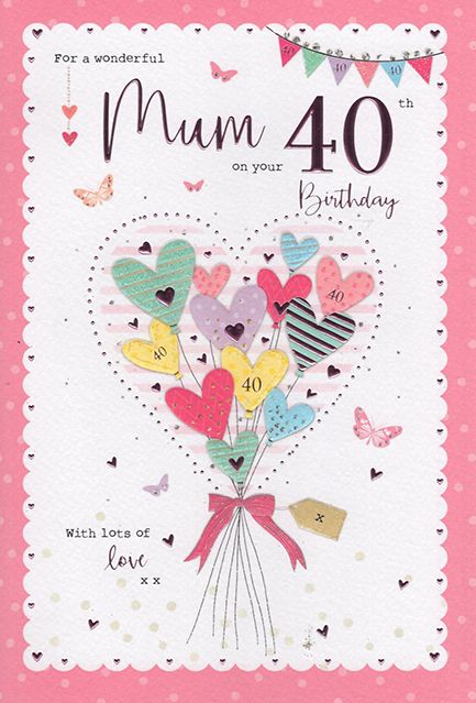 Verse reads: Hope you have a day you won't forget, with memories to treasure and that your 40th will stay in your heart forever. Happy 40th Birthday to a fabulous Mum
