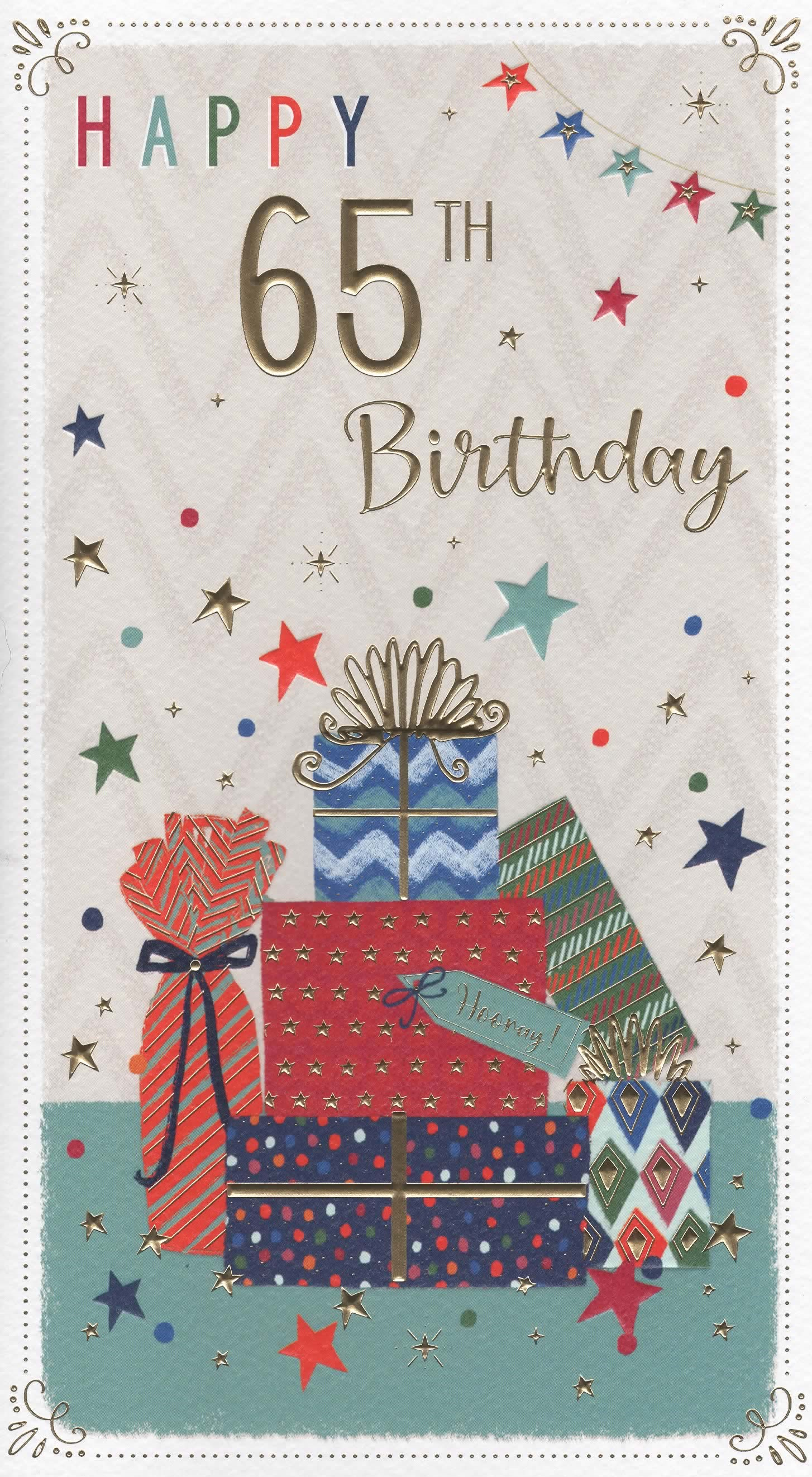 Verse reads: Wishing you a Birthday, That's perfect in every way, Relax, enjoy and celebrate, This very special day. Happy 65th Birthday