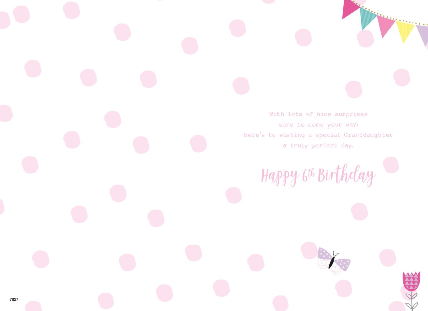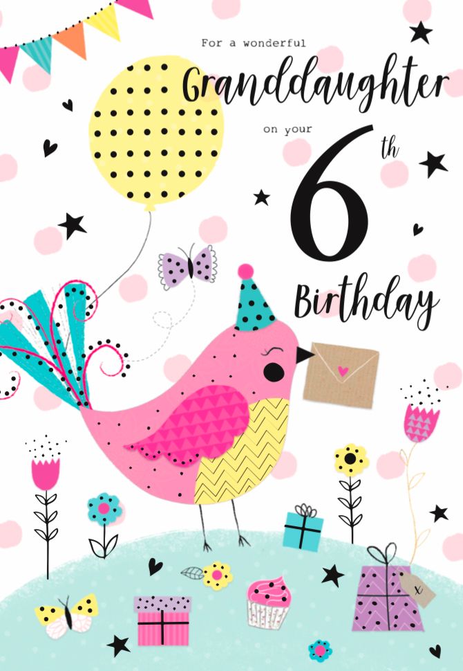 Verse reads: With lots of nice surprises sure to come your way, here's to wishing a special Granddaughter a truly perfect day. Happy 6th Birthday