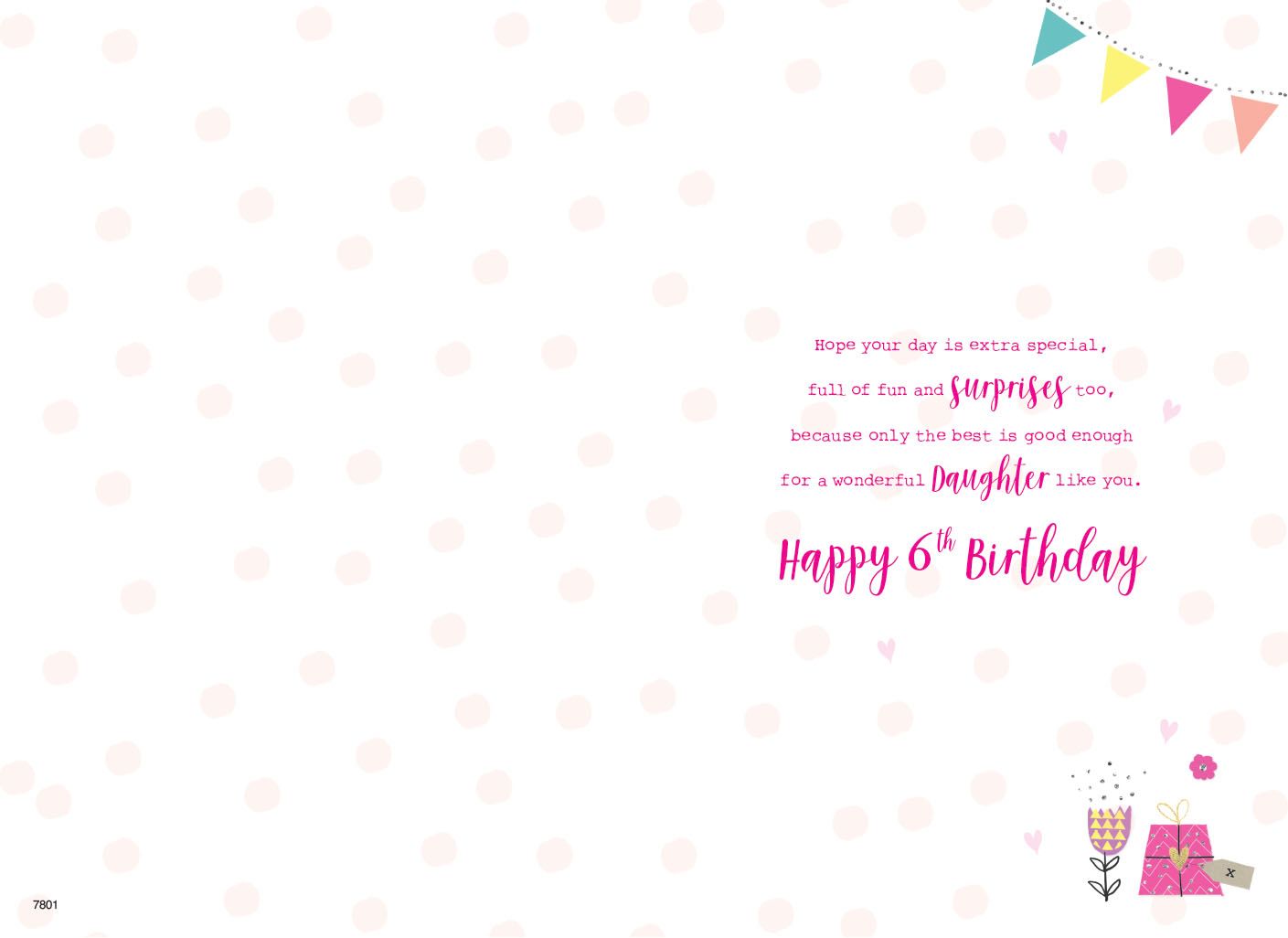 Verse reads: Hope your day is extra special, full of fun and surprises too, because only the best is good enough for a wonderfulDaughter like you. Happy 6th Birthday