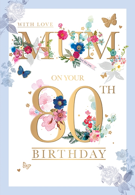 Verse reads: Eighty special wishes are being sent your way, Each one bringing happiness on this very special day With Love on your 80th Birthday MUM