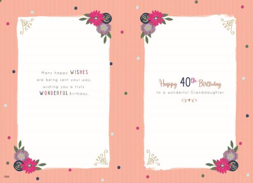 For a special Granddaughter on your 40th Birthday - full colour insert