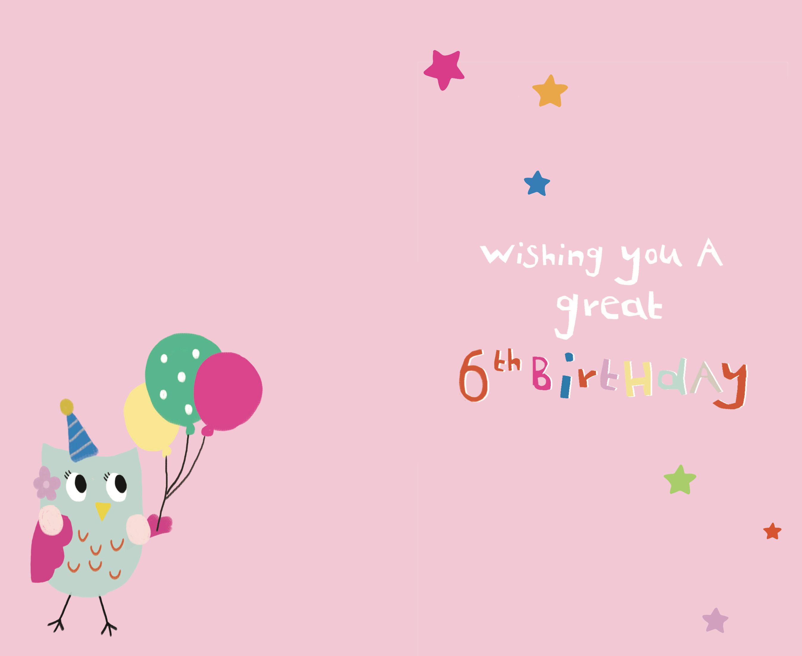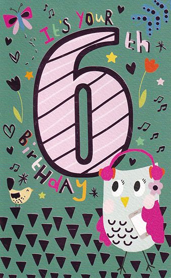 6th - Your 6th Birthday Card - Owl Cute Headphones