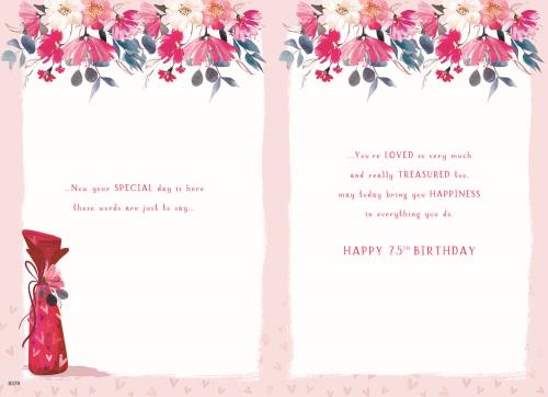 Verse: Now your special day is here these words are just to say... you're loved so very much and really treasured too, may today bring you happiness in everything you do. Happy 75th Birthday