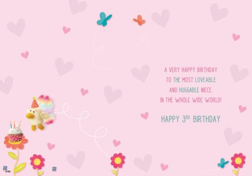 Verse: a very Happy Birthday to the most loveable and huggable niece in the whole wide world happy 3rd birthday