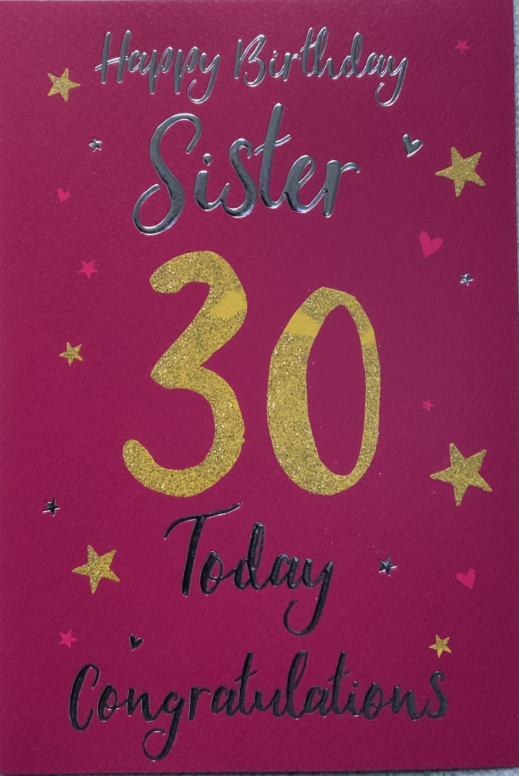Sister 30th Birthday - Gold Numbers - Star Effect - Luxury