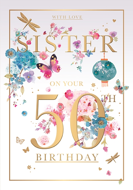 Verse reads: You've had many happy birthday's but hope this one is the best, for turning FIFTY's special, more so than all the rest. With love on your 50th Sister
