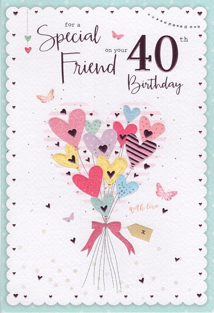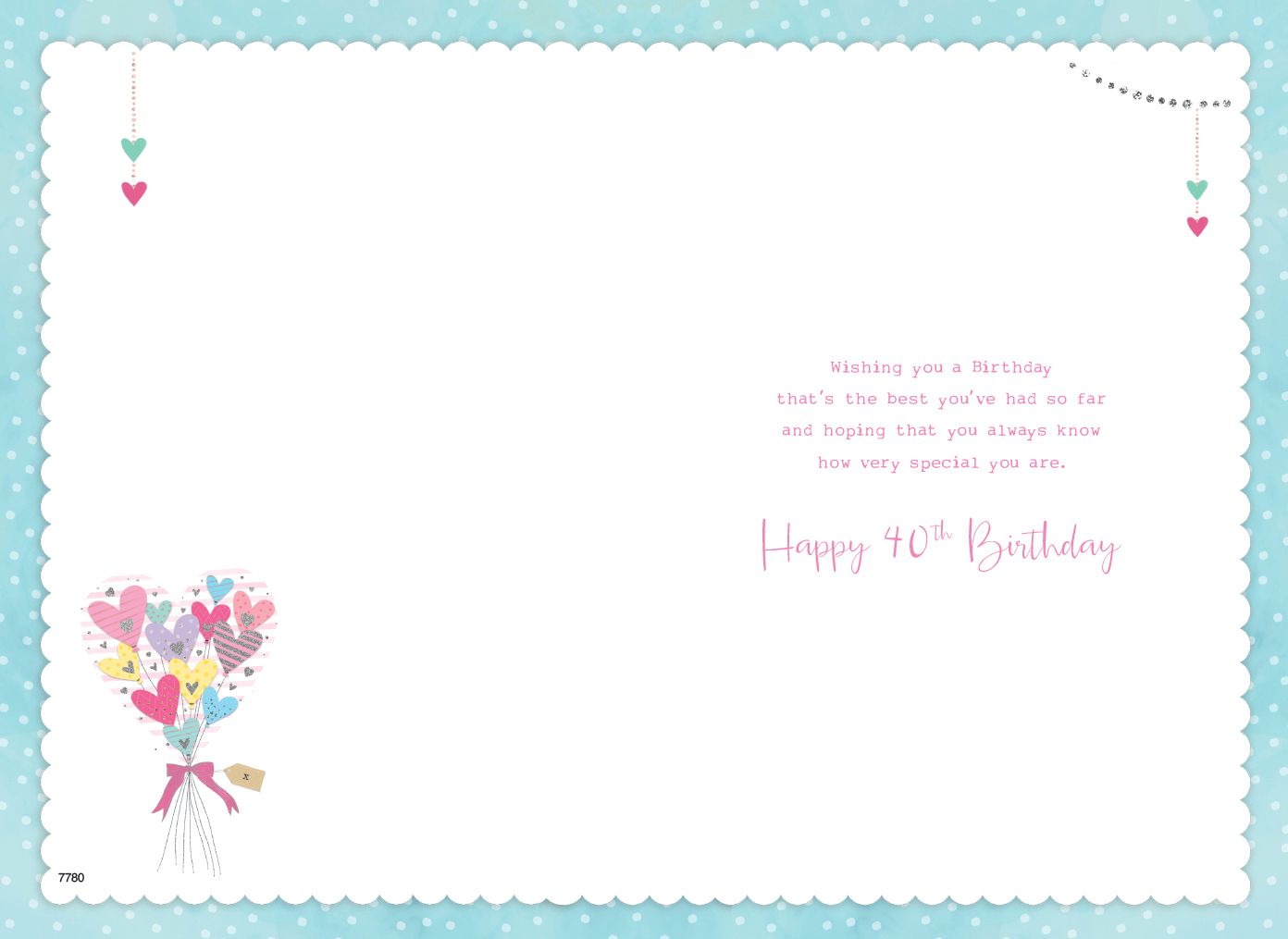 Happy 40th Birthday. Supplied with a light purple envelope to compliment this lovely card.