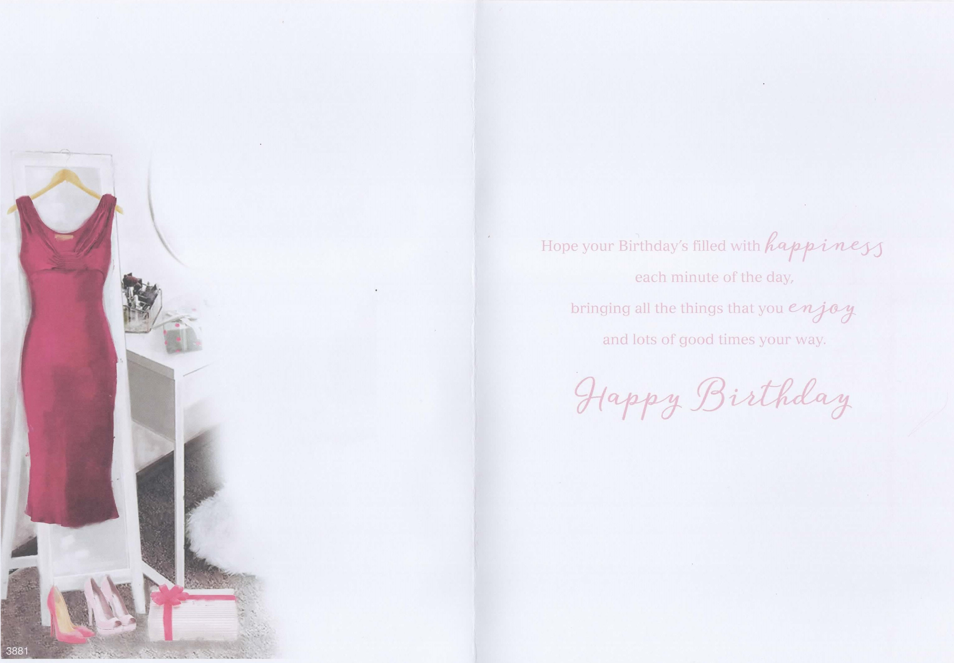 Verse reads: Hope your Birthday's filled with happiness each minute of the day, bringing all the things that you enjoy and lots of good times your way. Happy Birthday