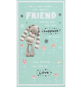 Verse reads: Front - There's nothing better than a Birthday to leave you feeling truly loved and make you realise how special you are to those around you... Inside - ...and no one deserves that more than you! Your friendship means the world to me and the good times we've shared, are some of the happiest I've known. That's why today, tomorrow and always I wish only the best for you! Happy birthday to a wonderful friend