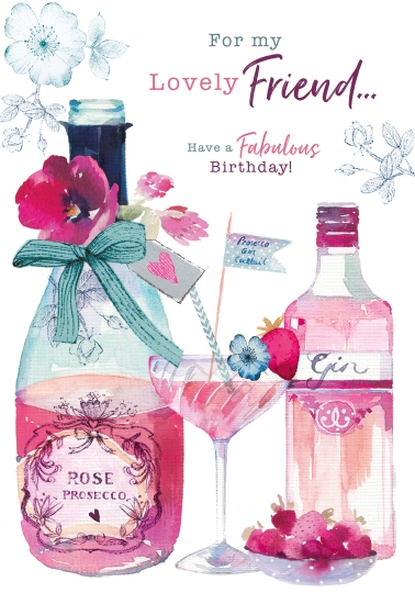 Friend - Fabulous Birthday - Rose Prosecco & Gin Bottles