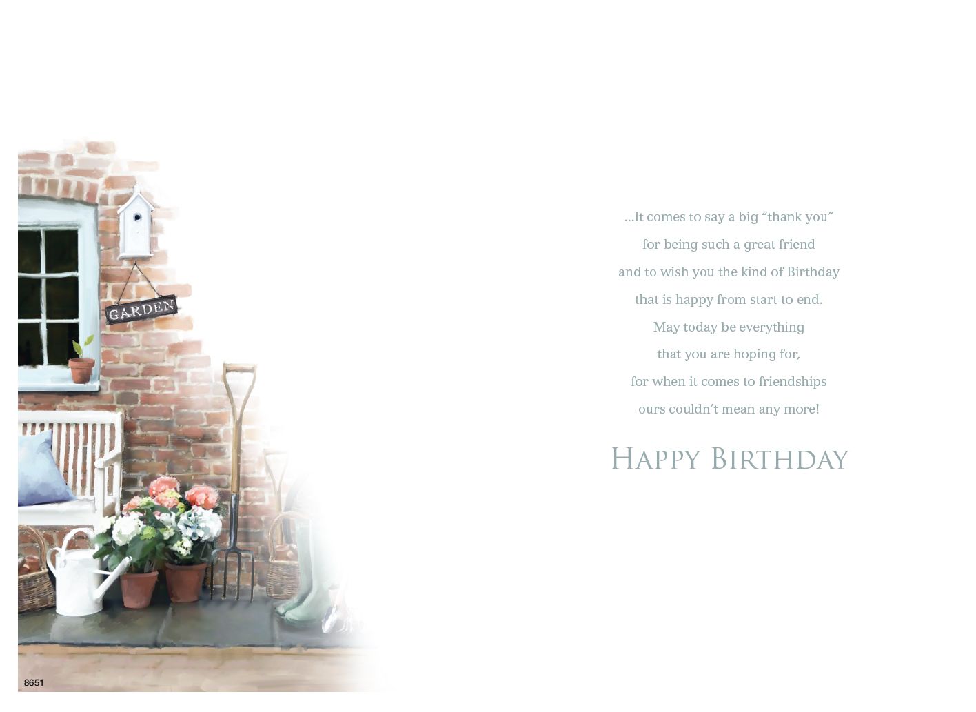 Inside- It comes to say a big "thank you" for being such a great friend and to wish you the kind of Birthday that is happy from start to end. May today be everything that you are hoping for, for when it comes to friendships ours couldn't mean any more! Happy Birthday