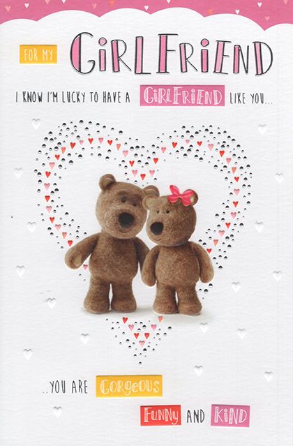 Verse reads: Front - I know I'm lucky to have a Girlfriend l like you... ...You are gorgeous, funny and kind Inside - And I am so in love with you. Have a wonderful birthday as nobody deserves it as much as you x
