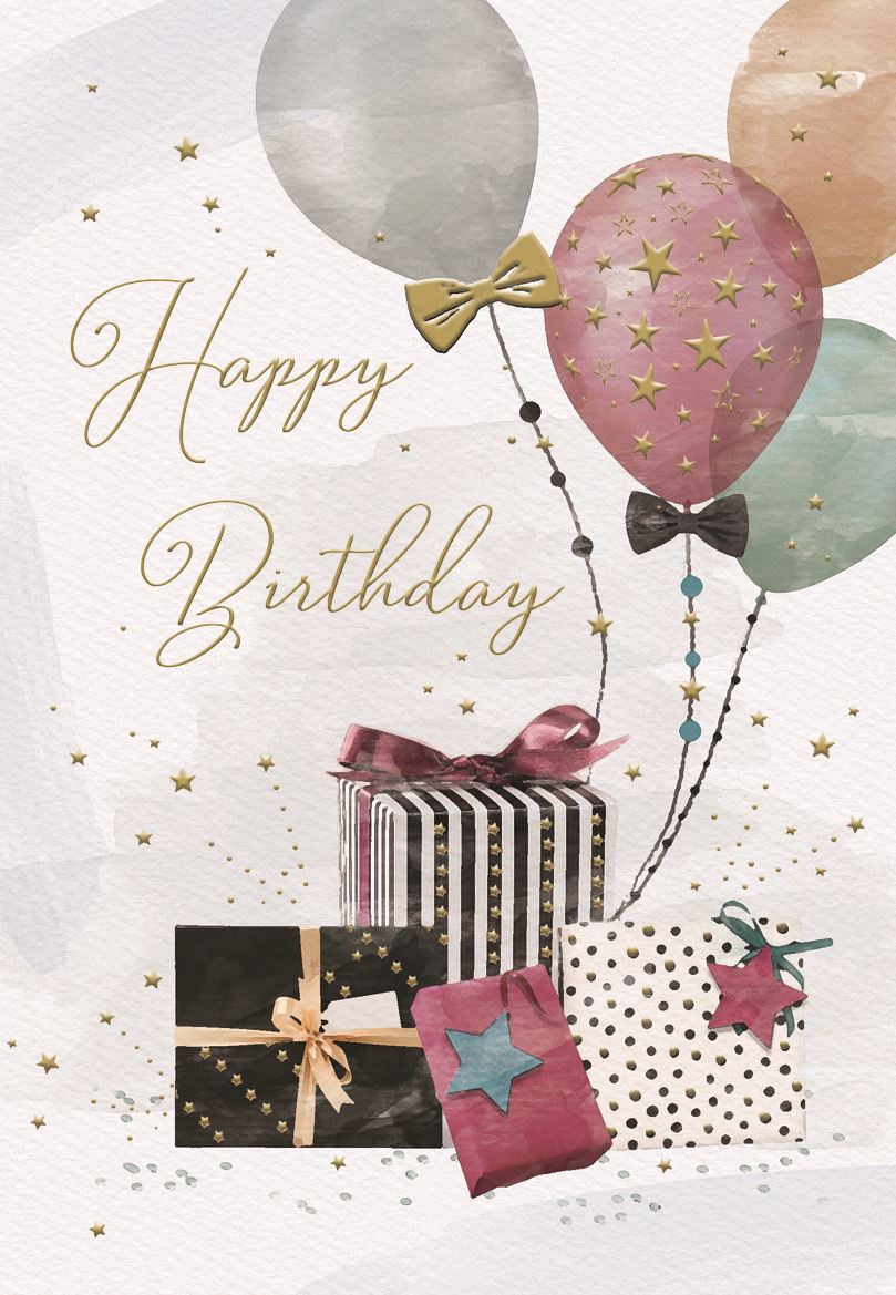 Happy Birthday Open Card - Black Wrapping Paper - Balloons with Bow Tie
