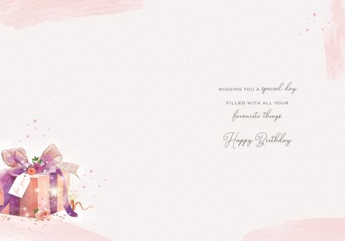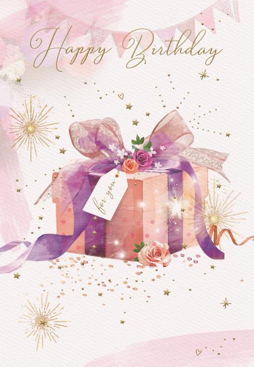 Happy Birthday Open Female Card - Silk Purple Bow - Peach Box