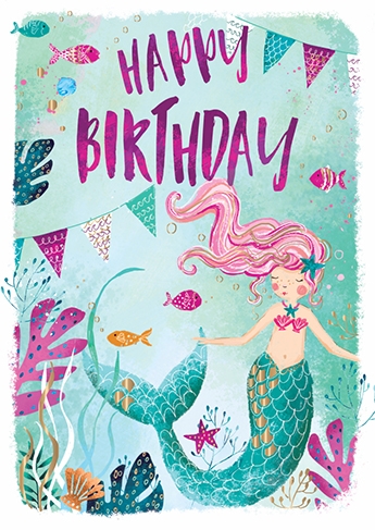 Mermaid Card - Pink Hair & Teal Tail - Undersea