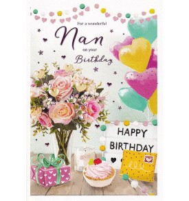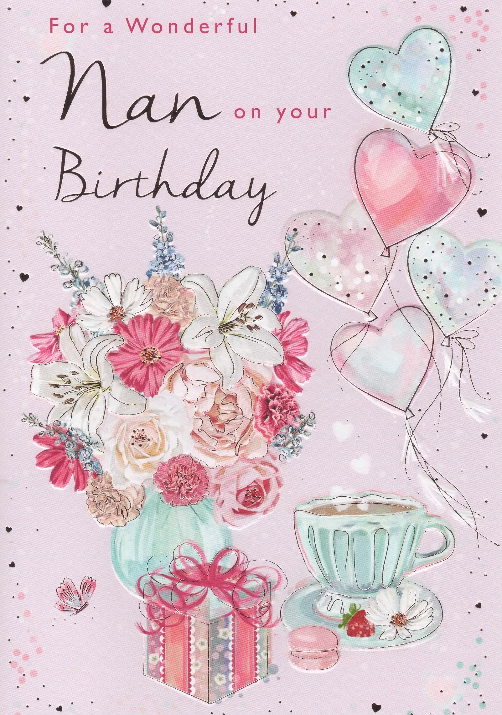 Verse reads: You're such a special Nan, you mean so very much, so this Birthday message is sent to you, with an extra loving touch. Here's a wish for the kind of Birthday, that brings happiness all year through, for when it comes to Nans, there is no one quite like you. Happy Birthday Nan