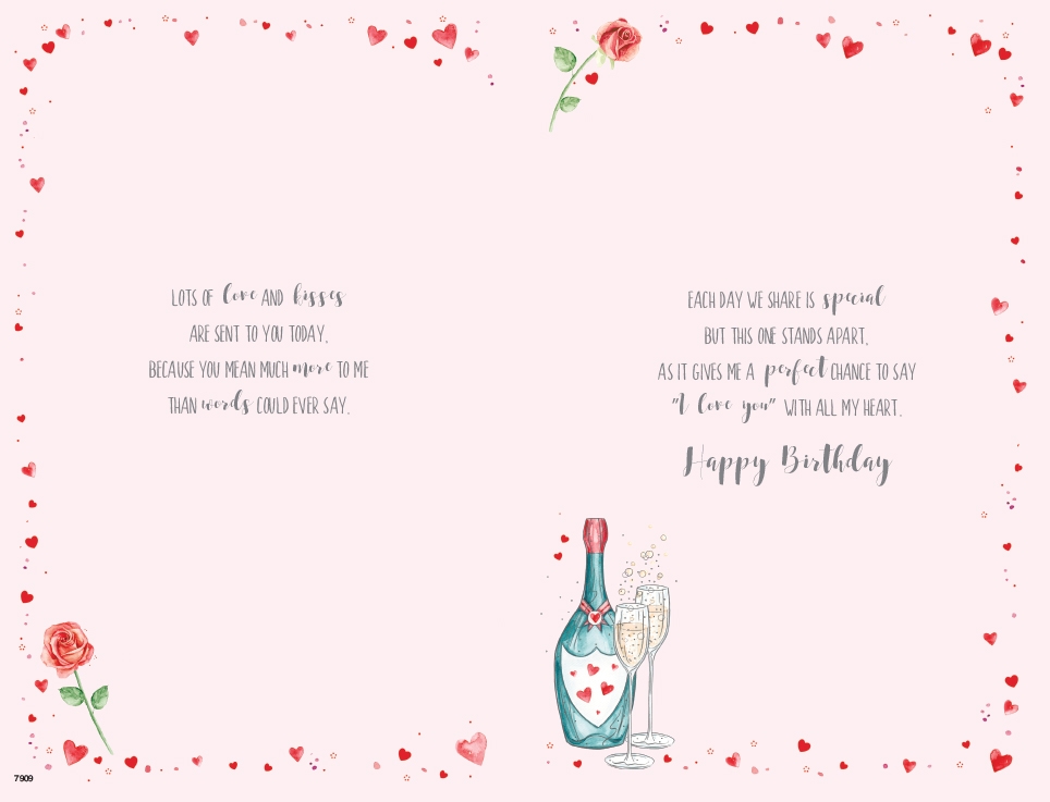 Verse reads: Lots of love and kisses are sent to you today, because you mean much more to me than words could ever say. Each day we share is special but this one stands apart, As it gives me a perfect chance to say "I love you" with all my heart. Happy Birthday