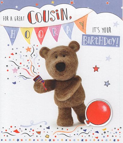 Cousin - Birthday - Hooray Bunting - Party Popper - Barley
