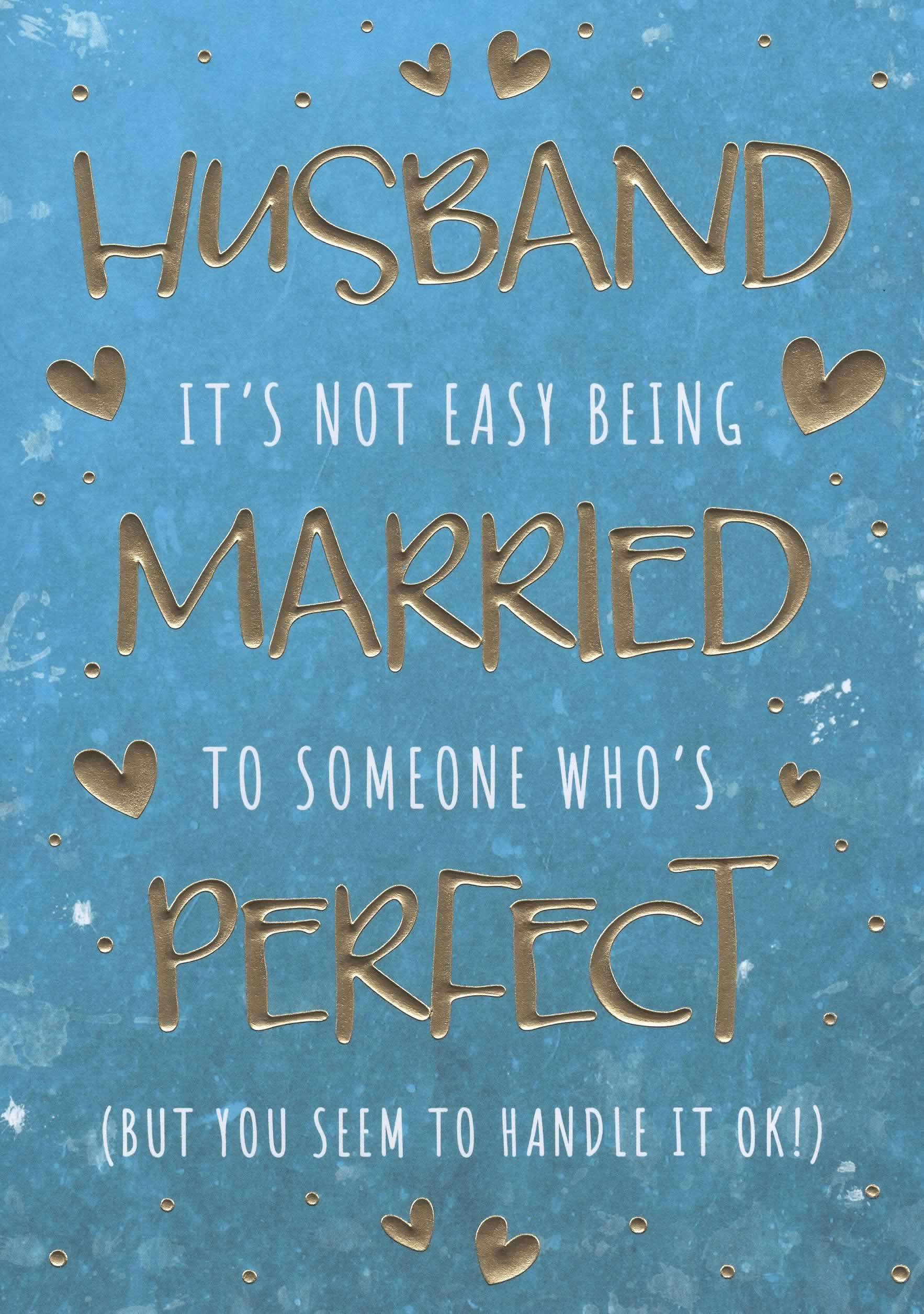 Verse reads: Front - Husband it's not easy being married to someone who's perfect (but you seem to handle it ok!) Inside - Happy Birthday!