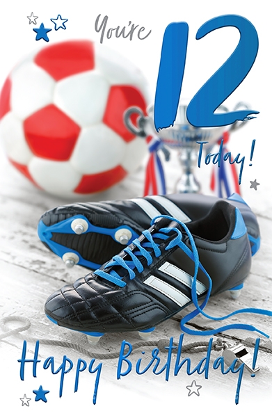 12th Birthday - 12 Today - Blue Foil - Football Theme