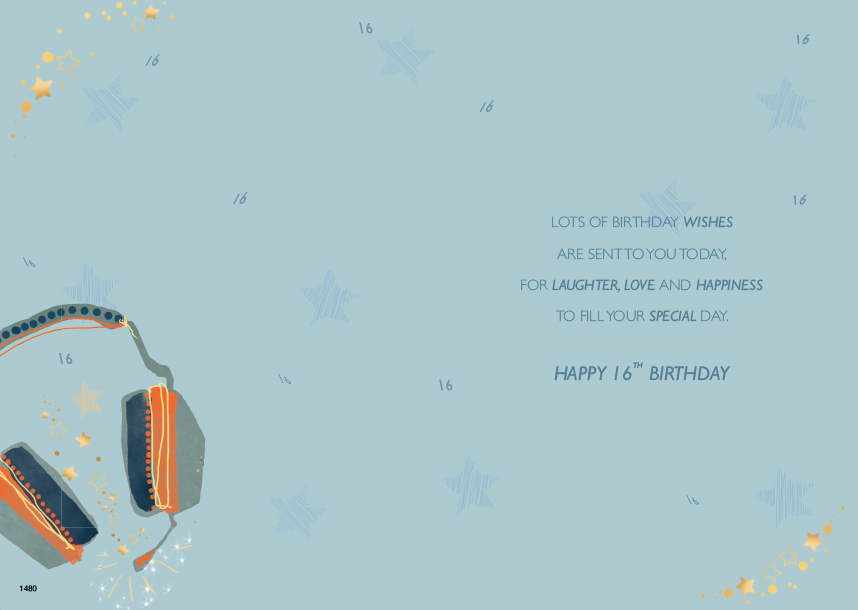 Verse reads: Lots of Birthday wishes are sent to you today, for laughter, love and happiness to fill your special day. Happy 16th Birthday