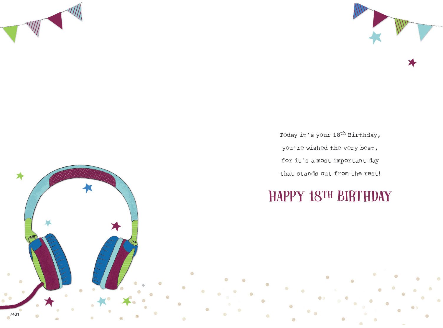 Verse reads: Front- Hope you have a great day have fun x... inside- Today it's your 18th Birthday, you're wished the very best, for it's a most important day that stands out from the rest! Happy 18th Birthday