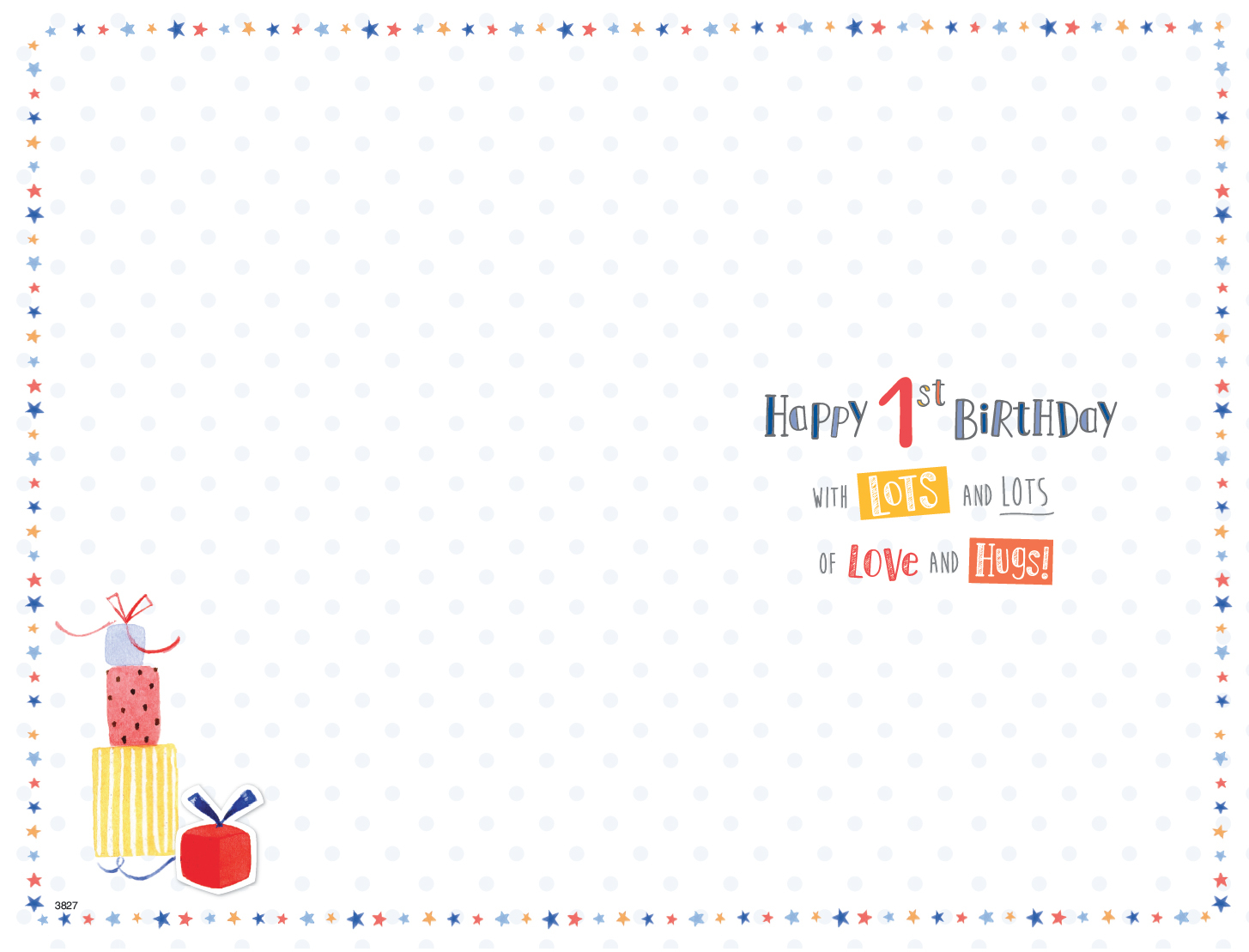 Verse reads: Front - May this first birthday...be as wonderful and special as you! Inside - Happy 1st Birthday with lots and lots of love and hugs!