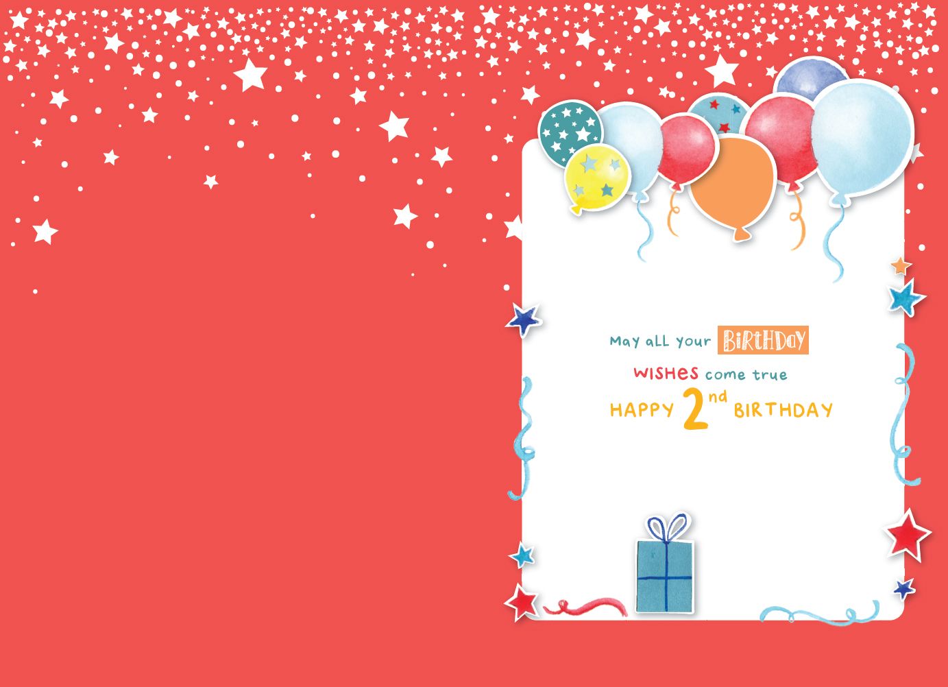 Verse reads: May all your Birthday wishes come true Happy 2nd Birthday