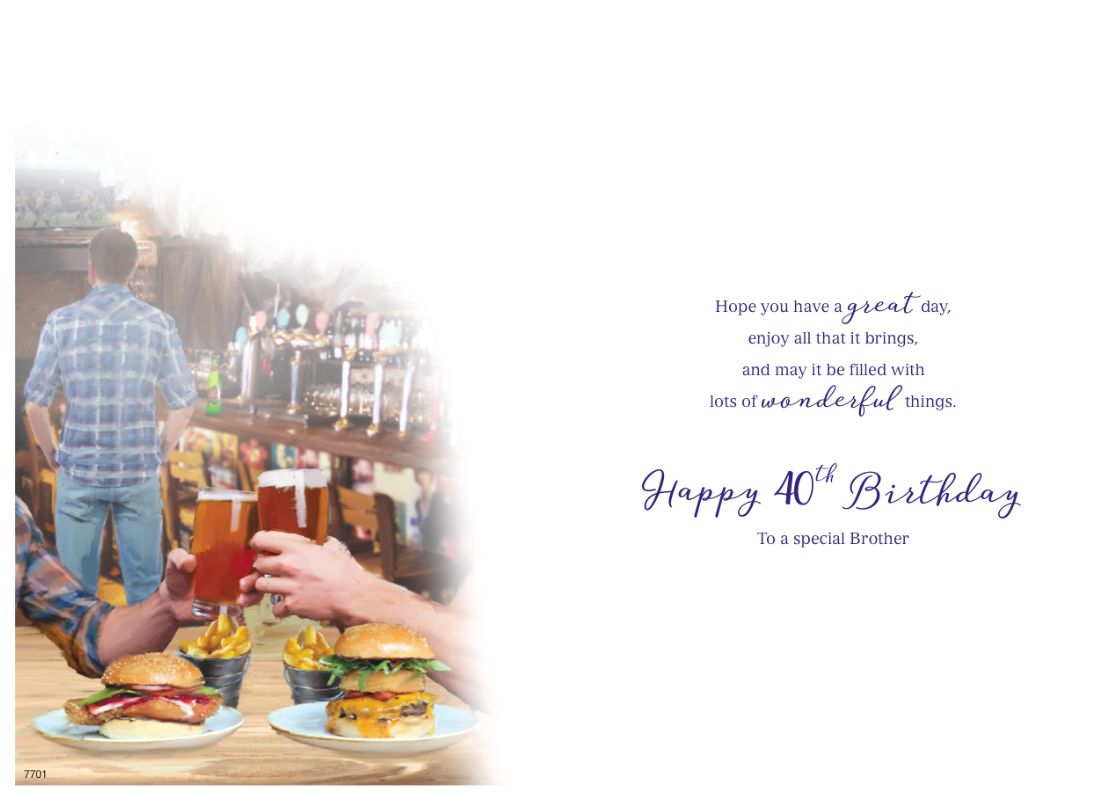 Verse reads: Hope you have a great day, enjoy all that it brings, and may it be filled with lots of wonderful things. Happy 40th Birthday to a special Brother