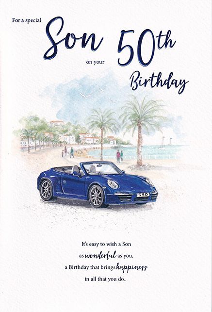 Verse reads: Front - It's easy to wish a Son as wonderful as you, a Birthday that brings happiness in all that you do. Inside - ...For anyone who knows you it's clear to see why, you mean more than you could know as each day paases by. Happy 50th Birthday Son