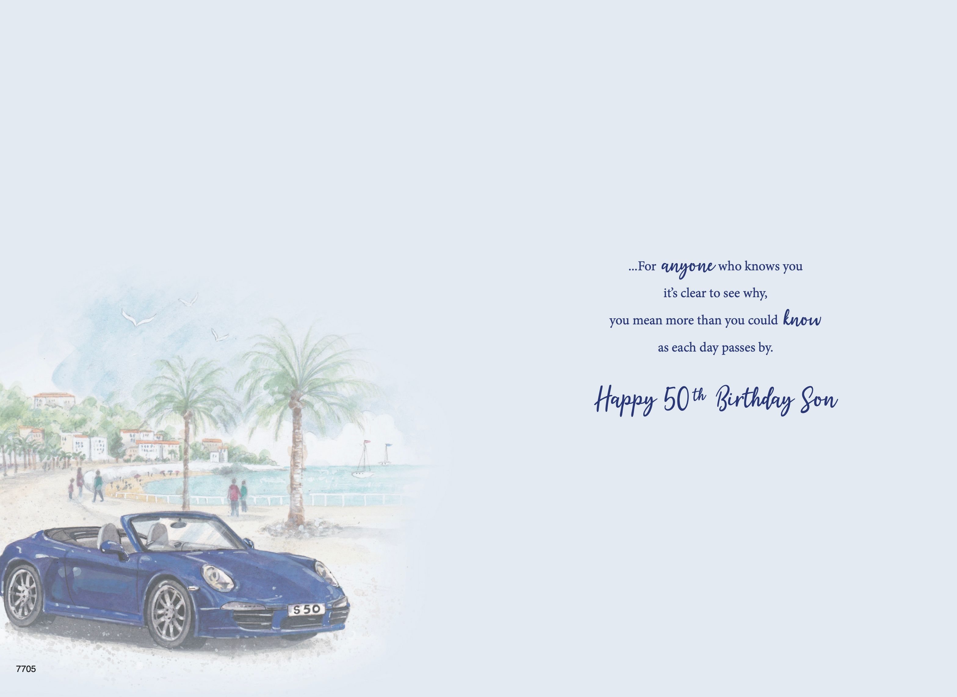 50th Birthday - Son - Blue Sports Car - By the Sea