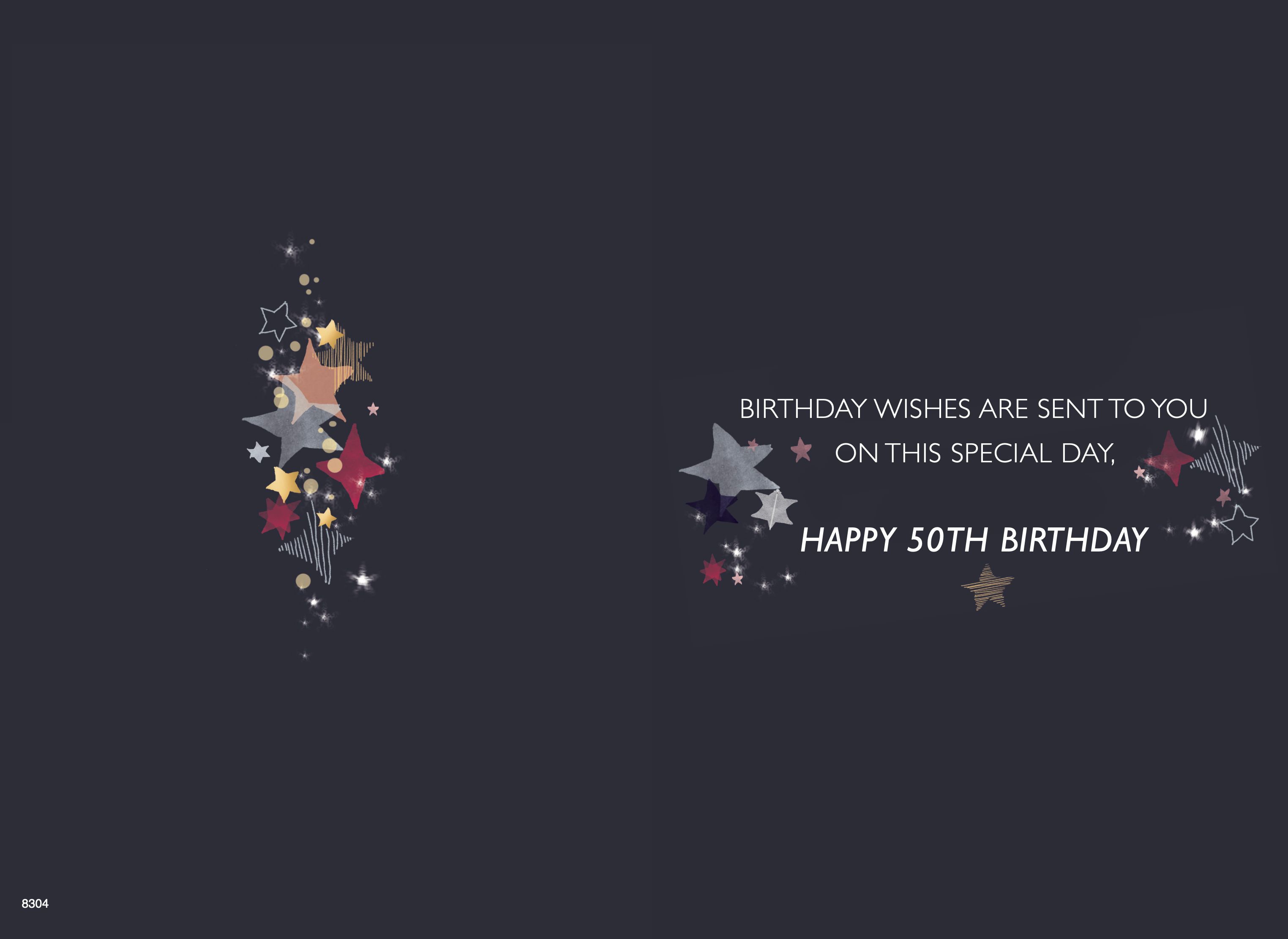 Verse reads: Birthday wishes are sent to you on this special day , Happy 50th Birthday