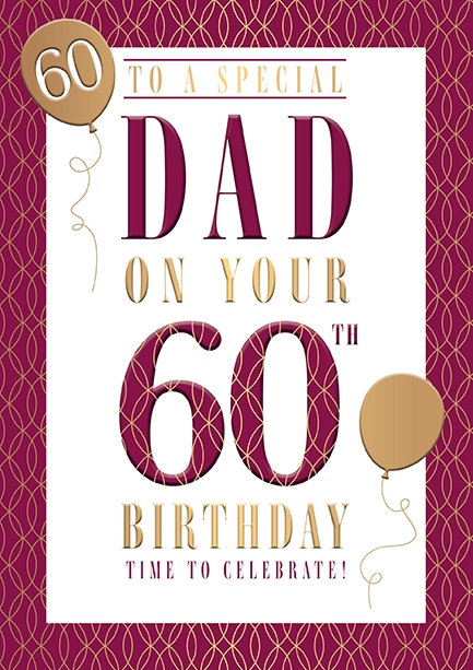Verse reads: Sending very special wishes on this wonderful occasion, Enjoy your 60th birthday and have a happy celebration. Happy 60th Birthday Dad