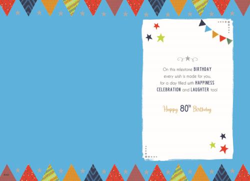 Verse: On this milestone Birthday every wish is made for you, for a day filled with happiness. Celebration and Laughter too! Happy 80th Birthday