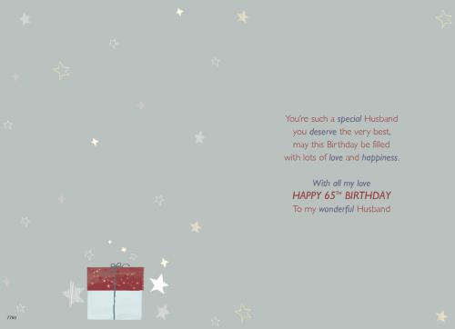 Verse: You're such a special Husband you deserve the very best, may this Birthday be filled with lots of love and happiness. With all my love Happy 65th Birthday to my wonderful husband