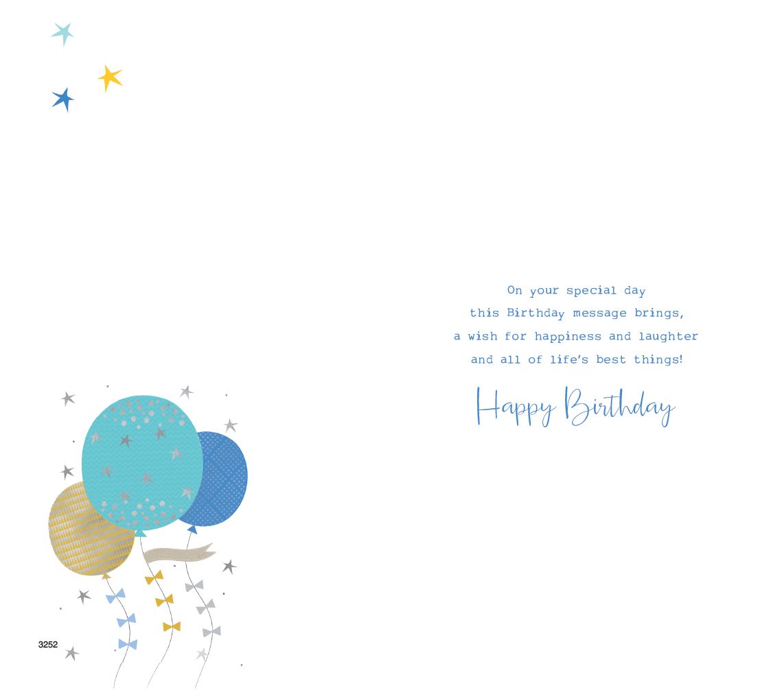 Nephew - Happy Birthday Card - Three Balloon Bouquet