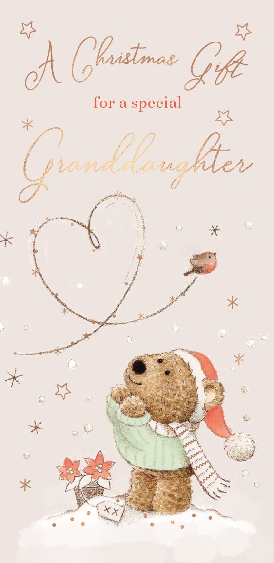 Granddaughter Christmas Money Gift Wallet - Barley Bear - Poinsettia Pot