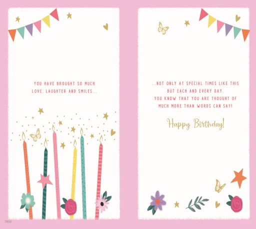 Verse: You have brought so much love, laughter and smiles... not only at special times like this but each and every day. You know that you are thought of much more than words can say! happy birthday