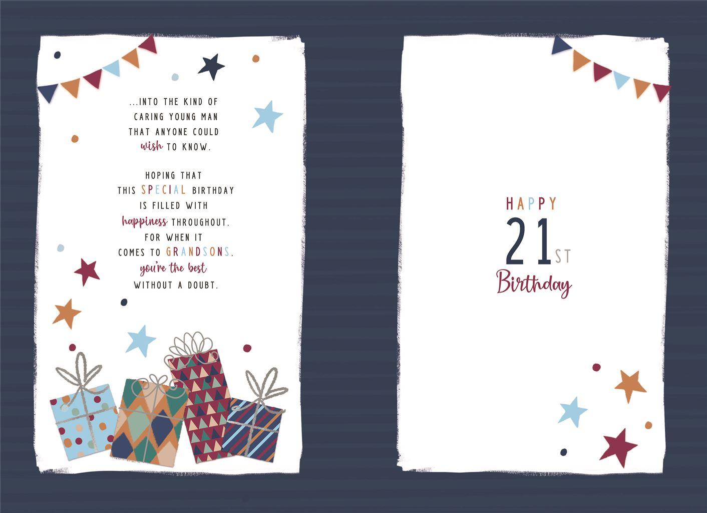 inside verse- into the kind of caring young man that anyone could wish to know. Hoping that this special birthday is filled with happiness throughout. For when it comes to Grandsons, you're the best without a doubt. Happy 21st birthday