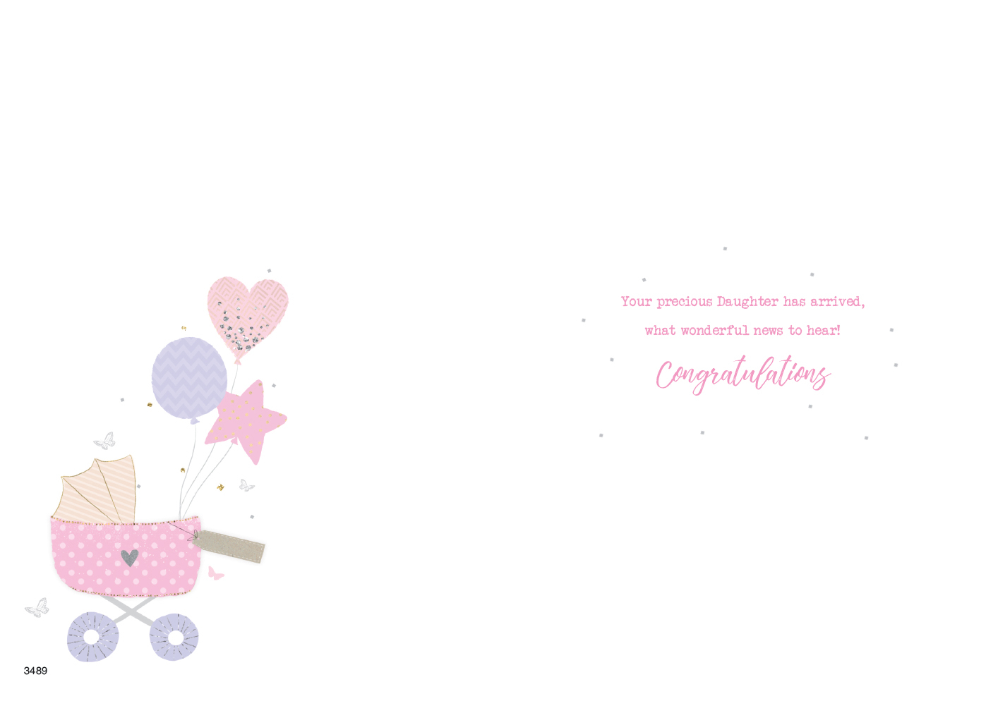 Verse reads: Your precious daughter has arrived, what wonderful news to hear! Congratulations