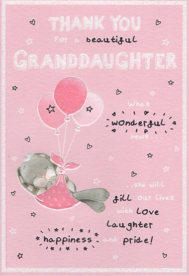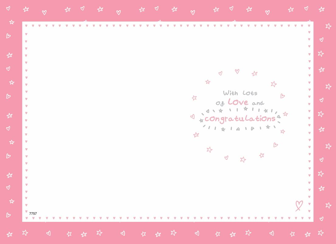 Verse reads: Front - What wonderful news...she will fill our lives with love laughter happiness and pride! Inside - With lots of love Congratulations