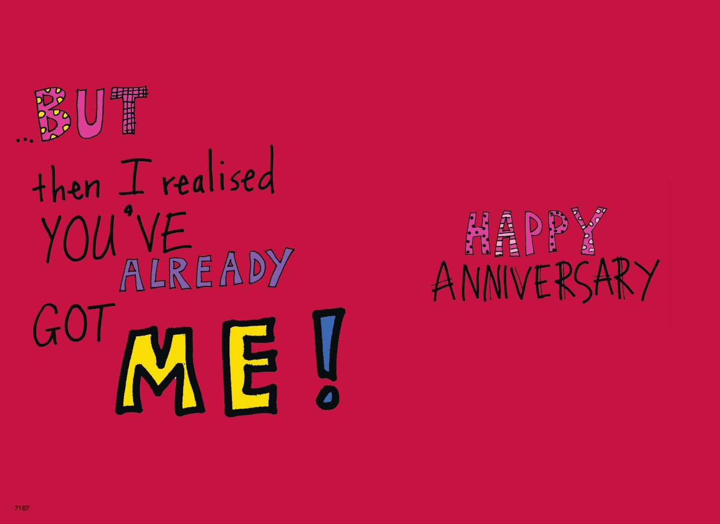Verse reads: Front- I wanted to get you something...Gorgeous brilliant,wonderful and unique..but then I realised you've already got me! Happy Anniversary